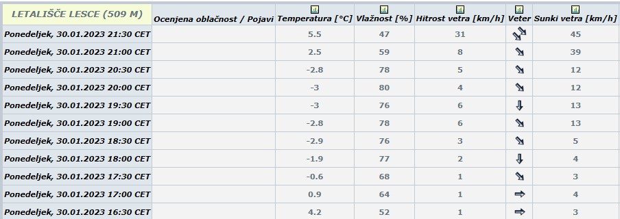 Trenutno vreme (1. 1. 2023 - 31. 1. 2023)
